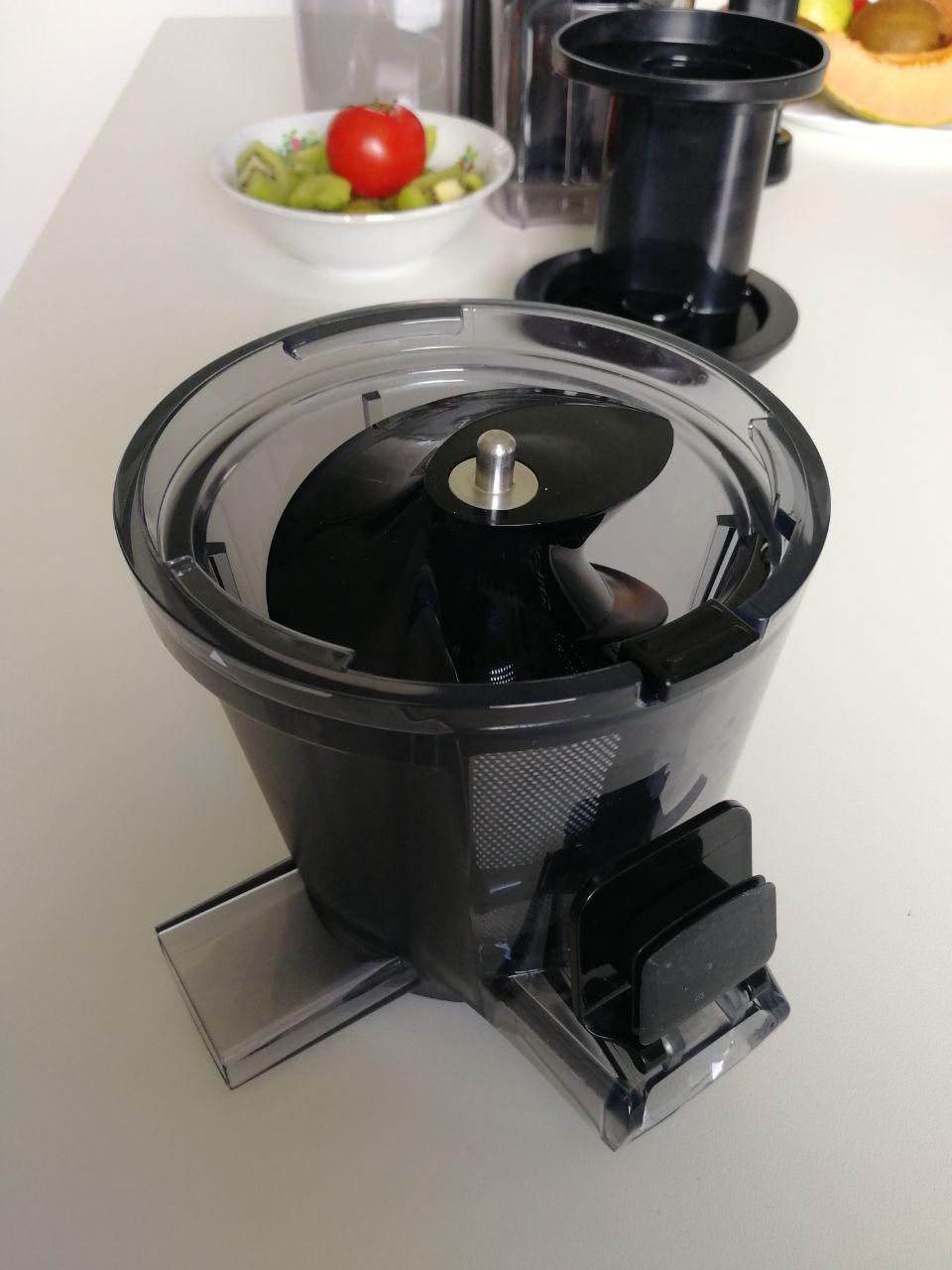 Al di sopra di una base stabile e ben fissata alla superficie di lavoro, grazie a dei gommini dalla buona presa, possono essere collocate le diverse parti che lo compongono. Dal basso verso l'alto, si dovrà posizionare, sopra l'unità motore, prima di tutto l'elica trainante con il cestello, l'inserto per il tipo di succo che si desidera estrarre, e il coperchio con il collo di alimentazione.
