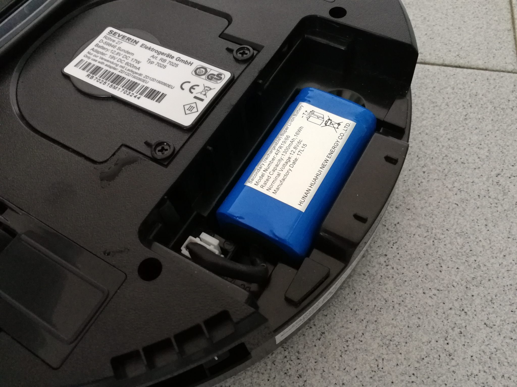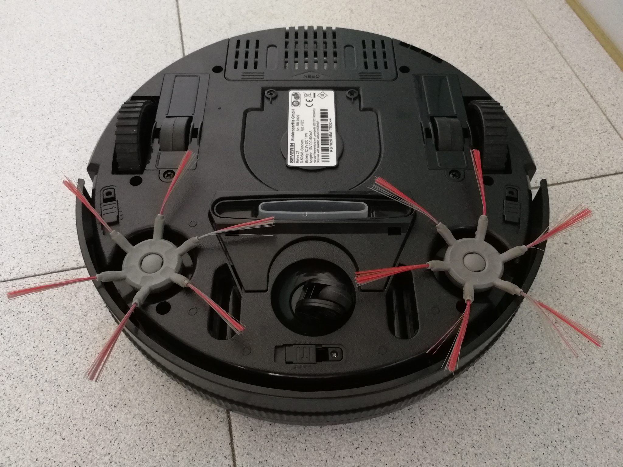 Bocchetta di Aspirazione Severin non scende nei dettagli di quest'ultimo, e non specifica la potenza totale e la potenza aspirante del dispositivo. I tre sensori ottici posti sulla scocca inferiore permettono di prevenire le cadute del robot. Accanto ad ognuno di questi è presente uno switch su quattro posizioni diverse, che permetterà l'impostazione del tipo di superficie da pulire. A seconda del colore del pavimento e della profondità dei gradini dovranno essere regolati di conseguenza gli switch.
